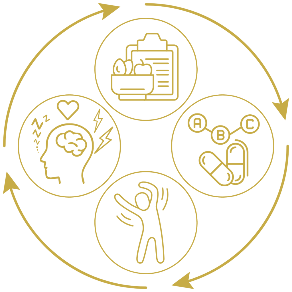 Ernährung, Suplementierung, Bewegung und Stressmanagement