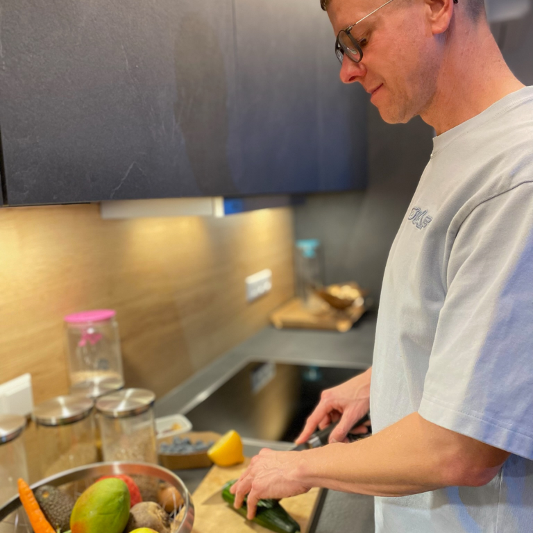 Im nächsten Schritt machen wir ein Koch-Coaching und passen deine Ernährung an deinen Gesundheitszustand an. Ich zeige dir mit wenigen einfachen Regeln, wie eng Essverhalten mit Wohlbefinden verbunden sind.